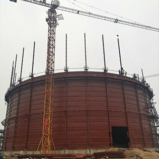 在化工行业,干式气柜可用于储存合成氨、甲醇生产过程中产生的氢气、一氧化碳等特种气体,其高密封性能避免气体与空气混合引发危险,同时保障气体纯度,满足后续工艺需求。在环保领域,干式气柜是沼气工程的核心设备:污水处理厂、畜禽养殖场产生的沼气,通过气柜储存后,可稳定输送至发电机组发电或提纯为生物天然气,实现 “变废为宝”,助力环保项目的资源化利用。